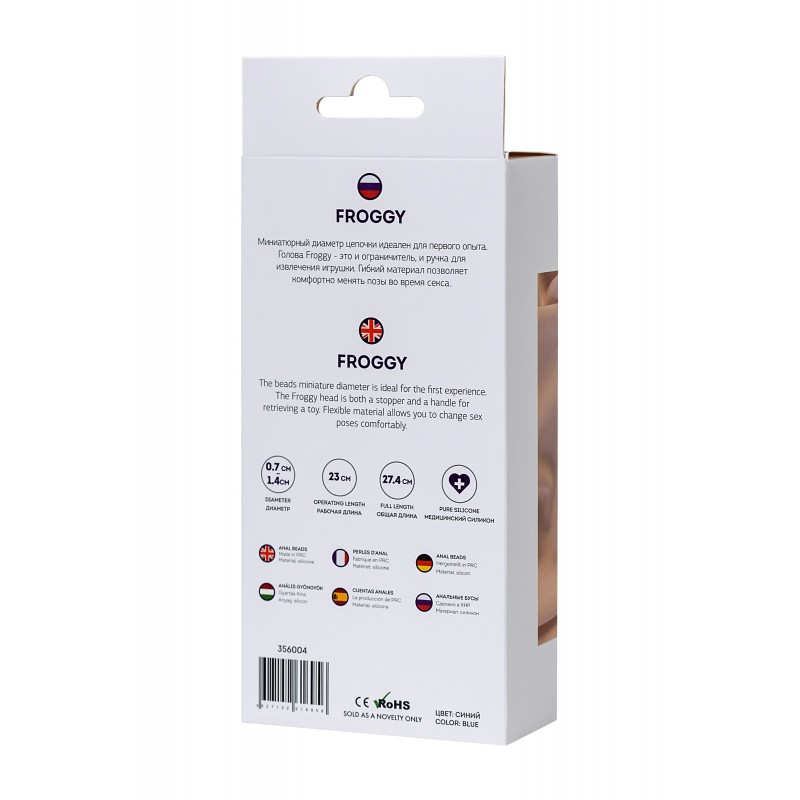 Froggy Миниатюрный диаметр цепочки идеален для первого опыта. Голова Froggy — это и ограничитель, и ручка для извлечения игрушки. Гибкий материал позволяет комфортно менять позы во время секса.