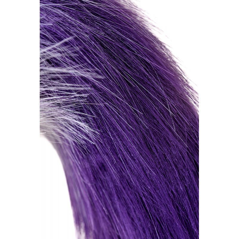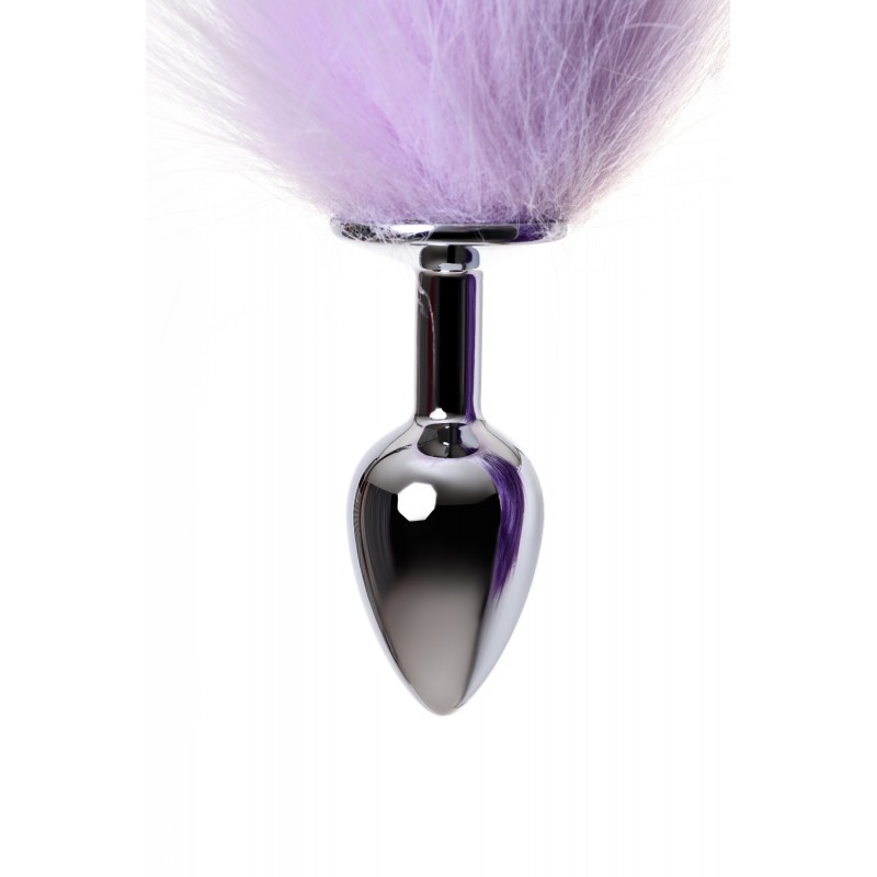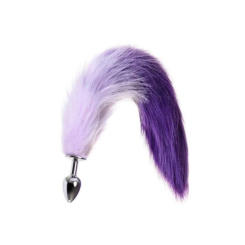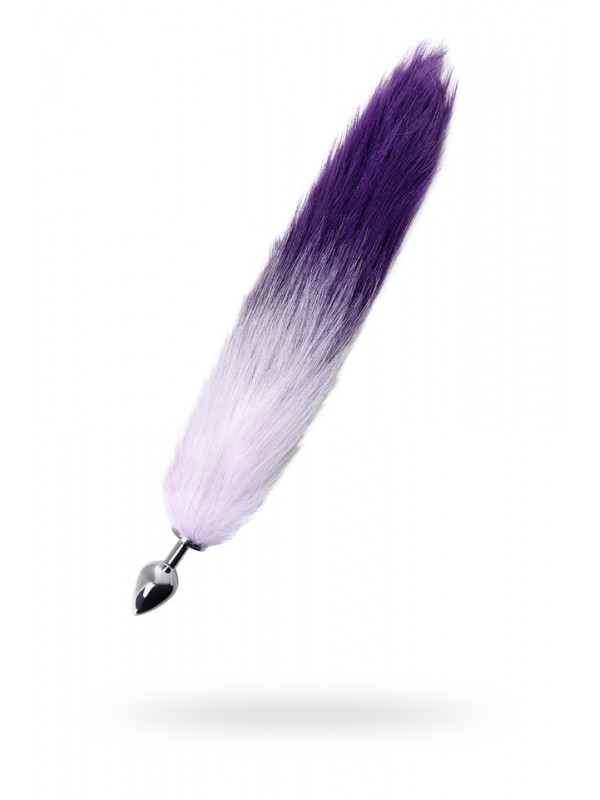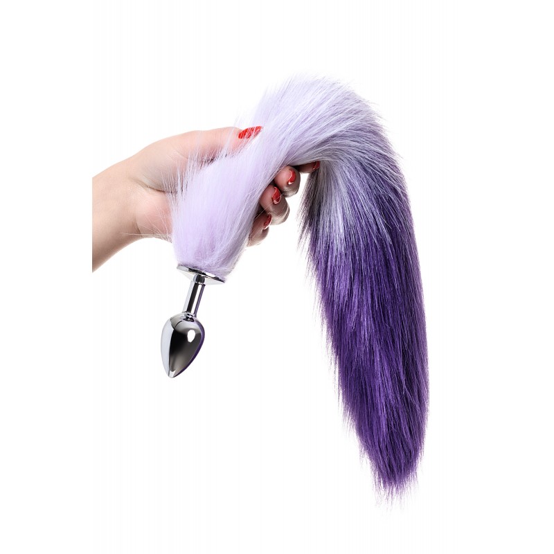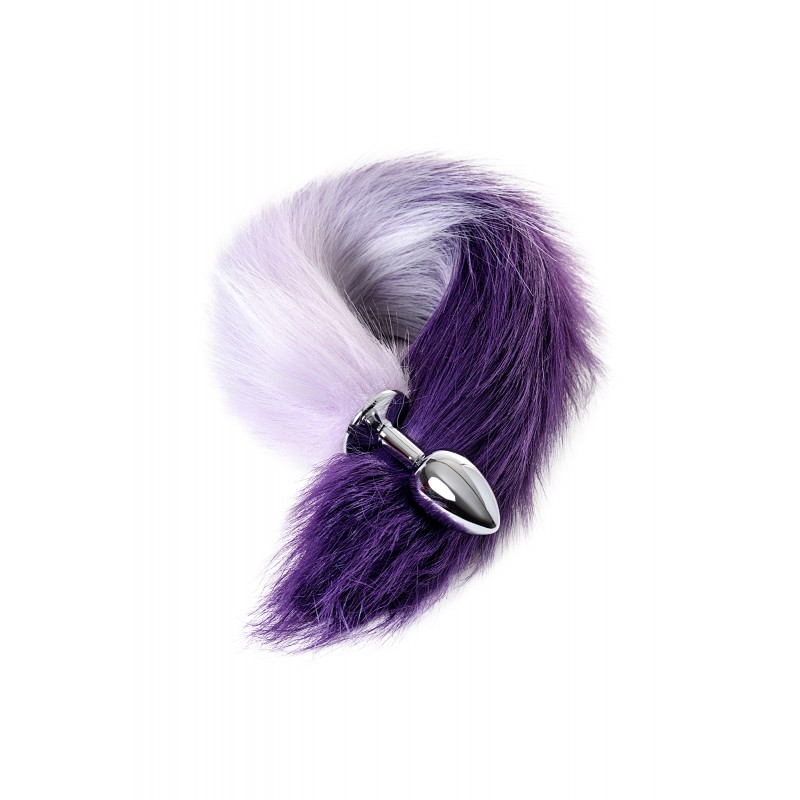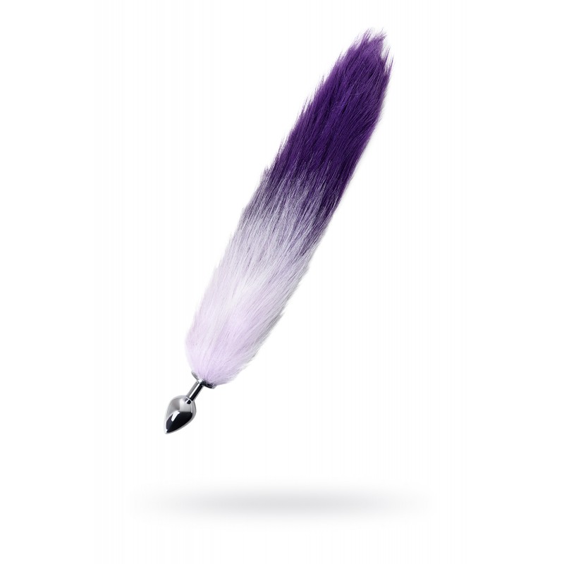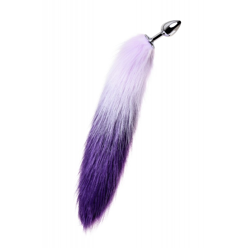 Анальная втулка Metal by TOYFA с бело-фиолетовым хвостом, металл, серебристый, 45 см, Ø 2,7 см код 712027-S