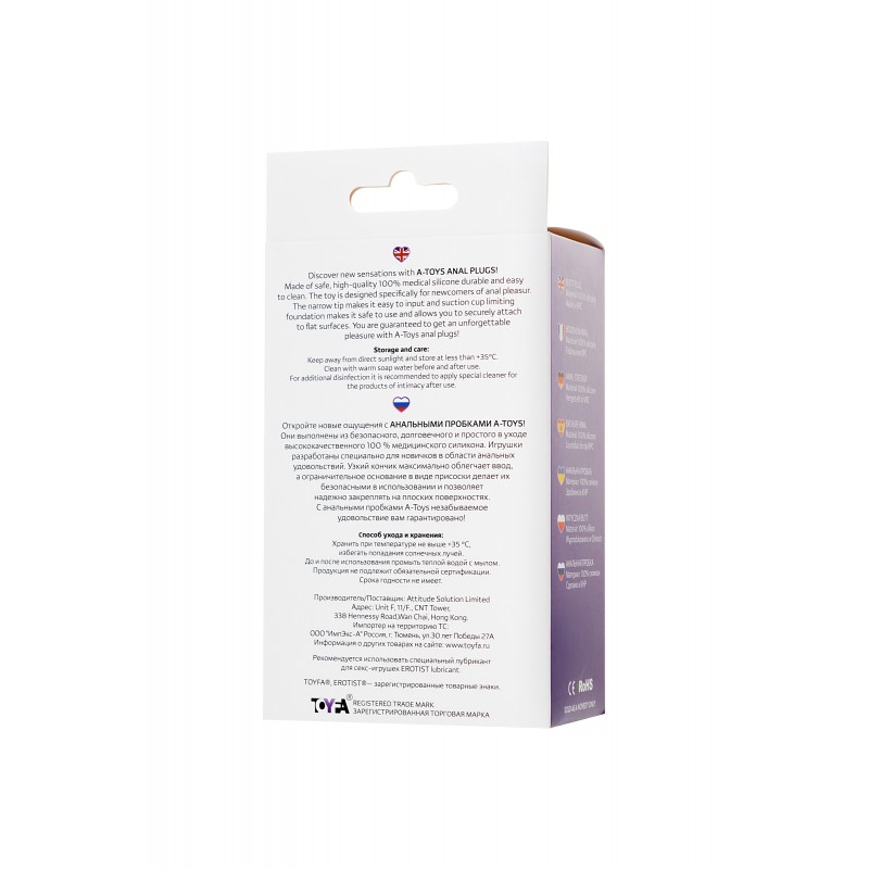 Откройте новые ощущения с анальными пробками A-Toys! Она выполнена из безопасного, долговечного и простого в уходе высококачественного 100 % медицинского силикона. Игрушка разработана специально для новичков в области анальных удовольствий. Узкий кончик максимально облегчает ввод, а ограничительное основание в виде присоски делает ее безопасной в использовании и позволяет надежно закреплять на плоских поверхностях. С анальными пробками A-Toys незабываемое удовольствие вам гарантировано!