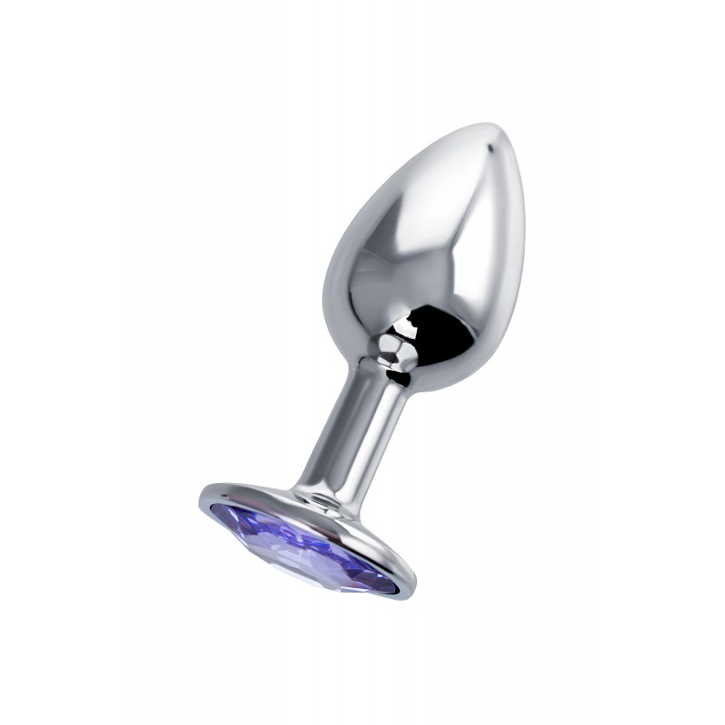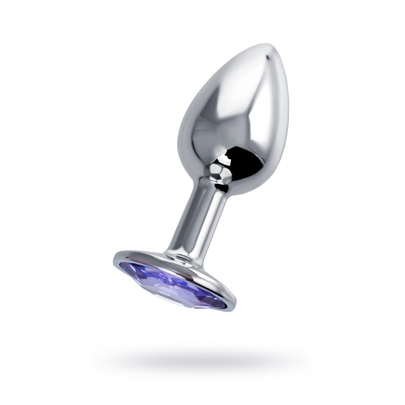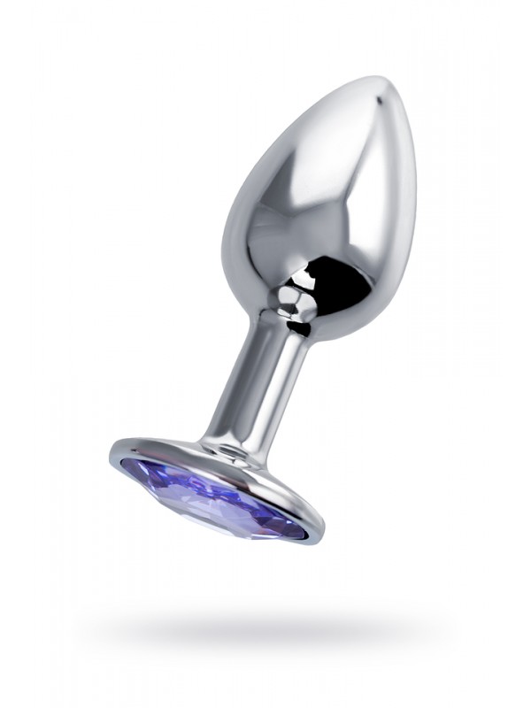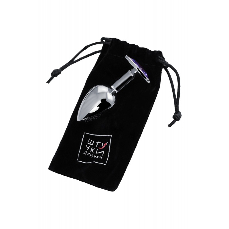 Анальный страз Штучки-дрючки, металл, серебристый, с кристаллом цвета аметист, 7 см, Ø 2,8 см, 50 г код 690120