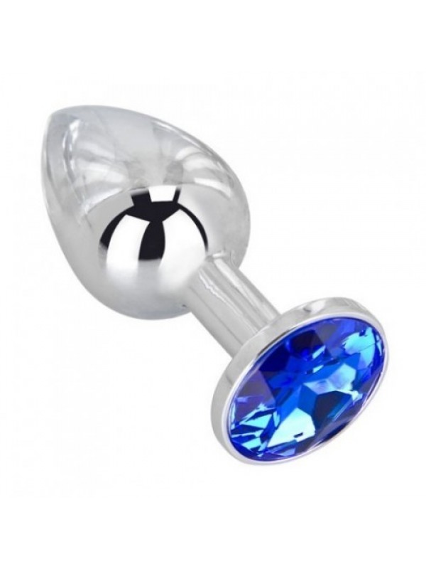 Металлическая анальная пробка с синим камушком S код RY-001DEEPBLUE