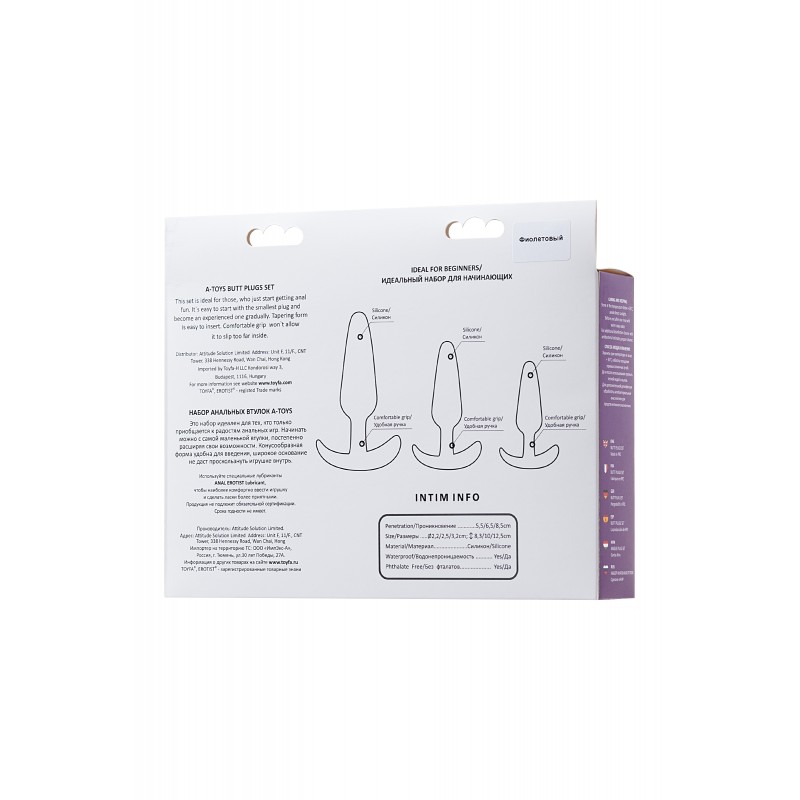 Набор анальных втулок TOYFA A-toys, Силикон, Фиолетовый, 3 шт. код 761311