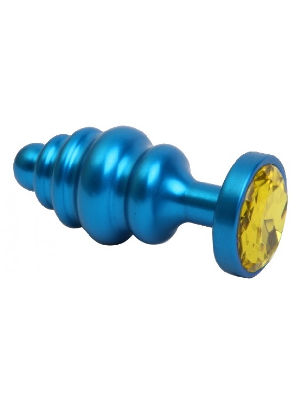 Синяя рифленая анальная пробка с желтым стразом S код 47428-9MM