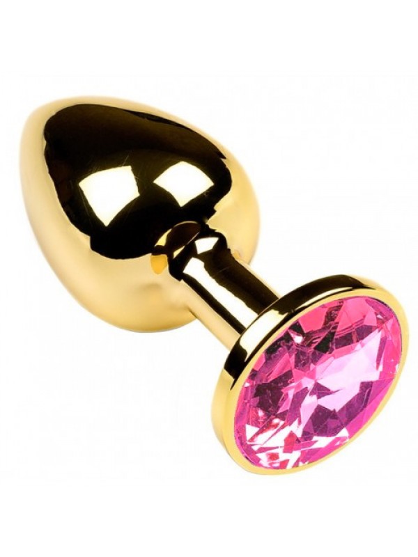 Золотая металлическая анальная пробка с камушком нежно розового цвета S код RY-004ROSE