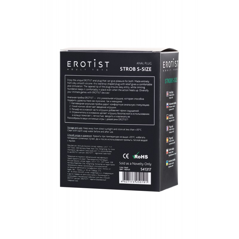 Анальная пробка Erotist Strob S - size, силикон, черная, 11,7 см код 541317