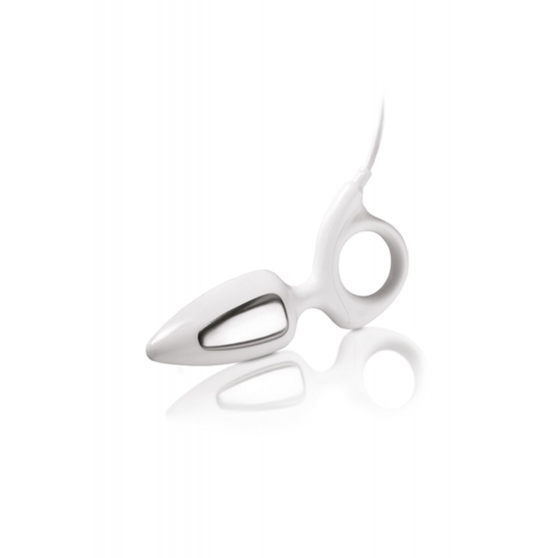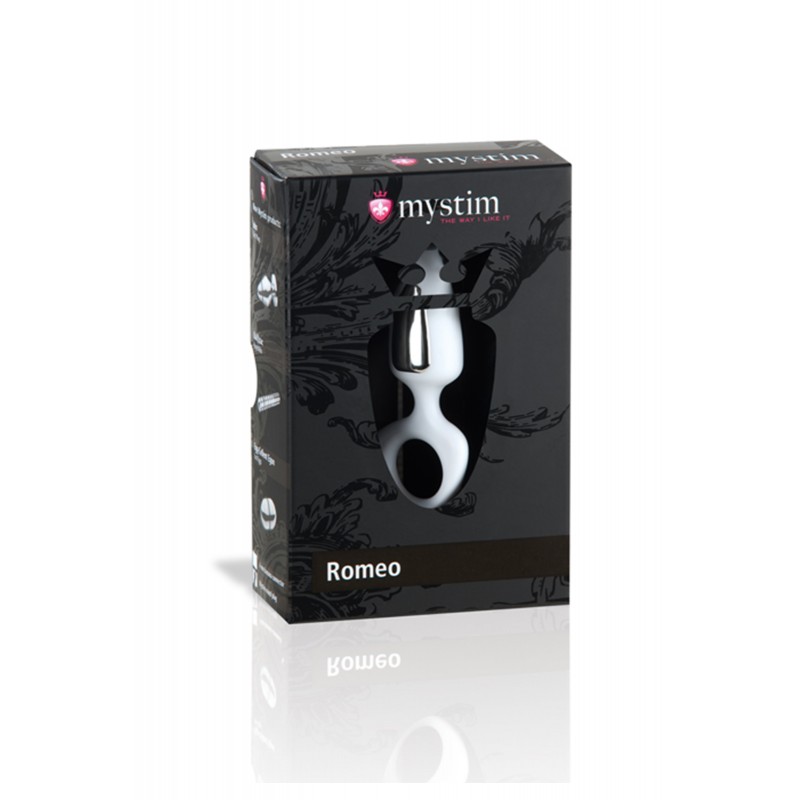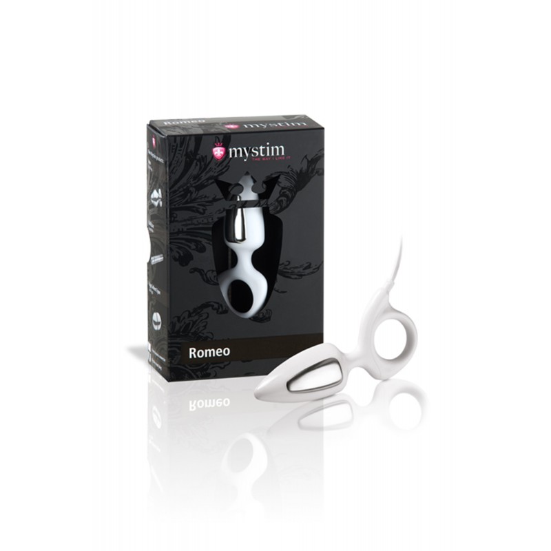 Анальная пробка Mystim Romeo, электростимуляция, пластик, белый, 8,5 см, Ø 3,5 см код 46310