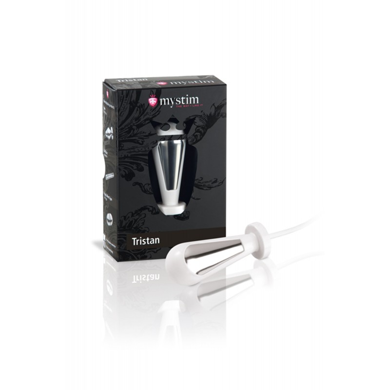 Анальная пробка Mystim Tristan, электростимуляция, пластик, белый, 7,5 см, Ø 3 см код 46320