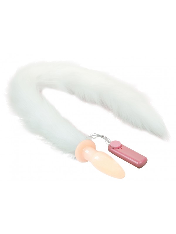 Анальная пробка с вибрацией и длинным белым хвостиком 75 см код 271121210