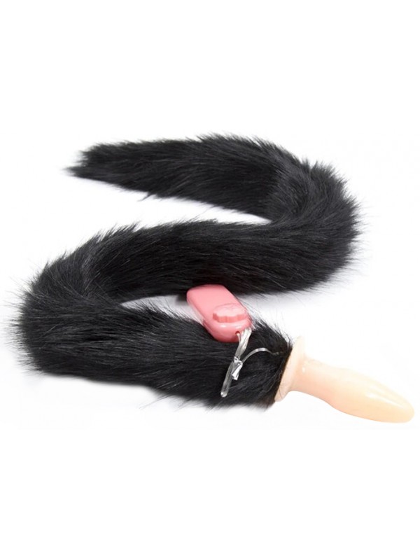 Анальная пробка с вибрацией и длинным черным хвостиком 75 см код 272421210