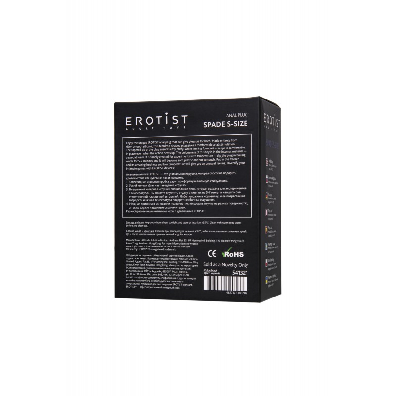 Анальная втулка EROTIST Spade — это уникальная игрушка, которая способна подарить удовольствие как мужчине, так и женщине. Каплевидная форма и миниатюрный размер S дарит комфортную анальную стимуляцию. Узкий скругленный кончик облегчает введение игрушки. 100% водонепроницаемость и мощная присоска в основании позволяют использовать втулку на любых гладких поверхностях, даже в ванной, а также служит надежным ограничителем. Внешний материал - нежный и безопасный силикон, а внутренний материал игрушки сделан из специальной пены, которая позволяет экспериментировать с температурой: опустите втулку в кипяток на 5-7 минут, и она станет мягкой, пластичной и горячей; положите втулку в морозилку, и ее потрясающая твердость и низкая температура обеспечат необычные ощущения. Добавьте разнообразия и экспериментов в ваши интимные игры с девайсами EROTIST! Длина рабочая - 7 см Диаметр - 1,4 - 3,4 см Вес - 48 г