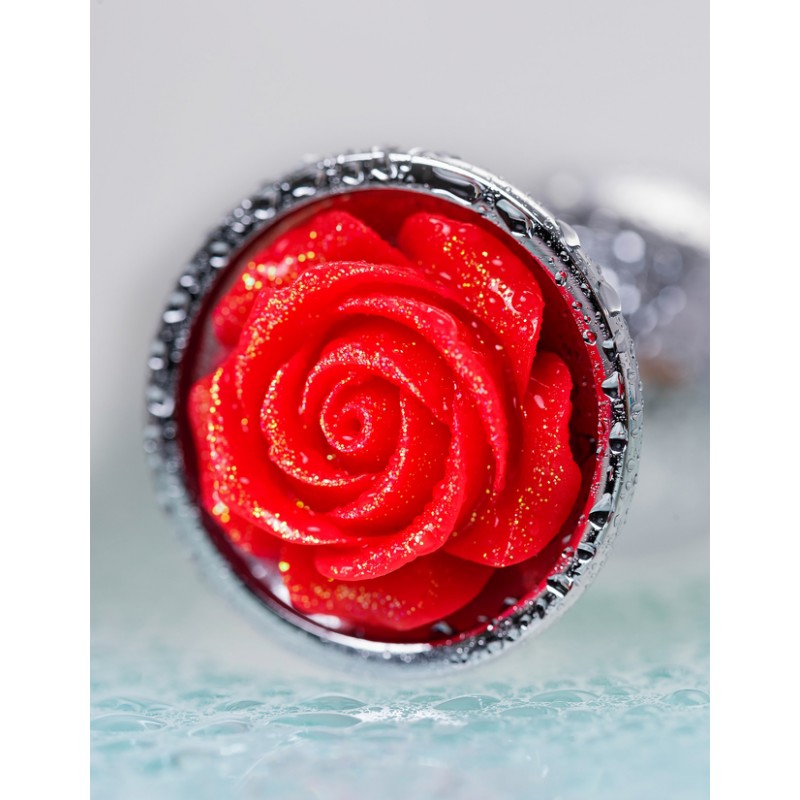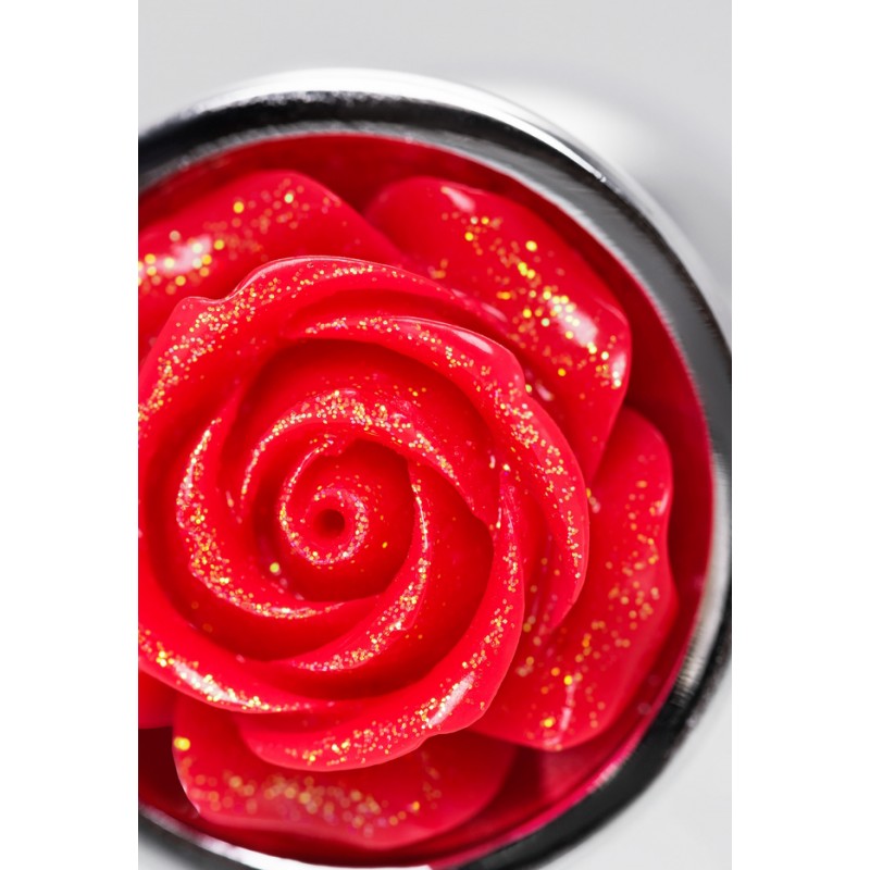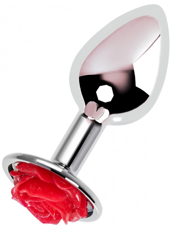 Анальная втулка Metal by TOYFA, металл, серебристая с красной розочкой, 8 см, Ø 2,7 см, 48 г код 717009-9