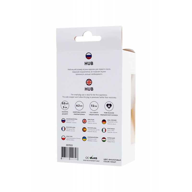 Анальная втулка ToDo by Toyfa Hub, силикон, фиолетовая, 7,2 см, Ø 2 см код 357022