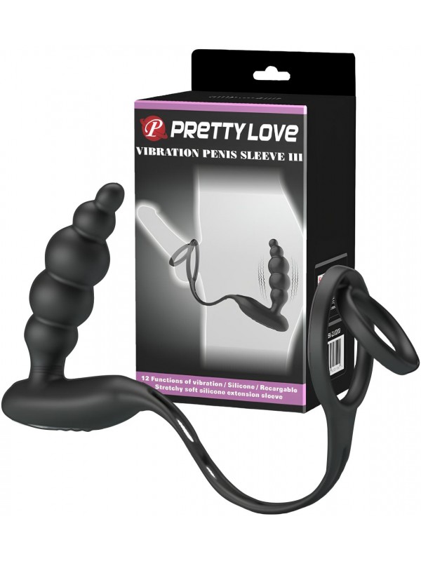 Анальная пробка с двойным эрекционным кольцом и вибрацией Pretty Love Vibration Penis Sleeve добавит в Ваш вечер огонька и еще больше оргазмов, стоит только попробовать!Вы можете наслаждаться процессом и не испытывать ни малейшего дискомфорта, за счет эластичности кольца будут плотно облегать член, помогая продлить половой акт, а анальная пробка с вибрацией доставит новые, ни с чем не сравнимые ощущения - в сочетании с двойным кольцом Вы получите море эмоций - подберите свой режим вибрации из 12 предложенных, и наслаждайтесь!Анальная пробка с двойным кольцом изготовлена из гипоаллергенного медицинского силикона и имеет приятную на ощупь, бархатистую поверхность. Для более комфортного использования и сохранения качества материала рекомендуем использовать смазки только на водной основе.Размер: общая длина колец с основанием пробки 21,2 см