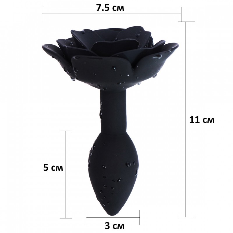 Силиконовая анальная пробка Роза черная код 272400228