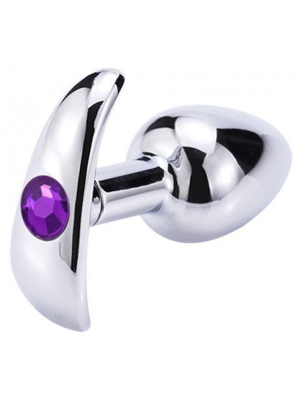 Анальная пробка из металла с фиолетовым камушком S код RY-130-S-DarkPurple