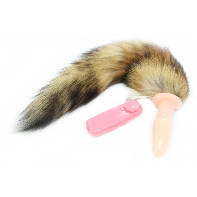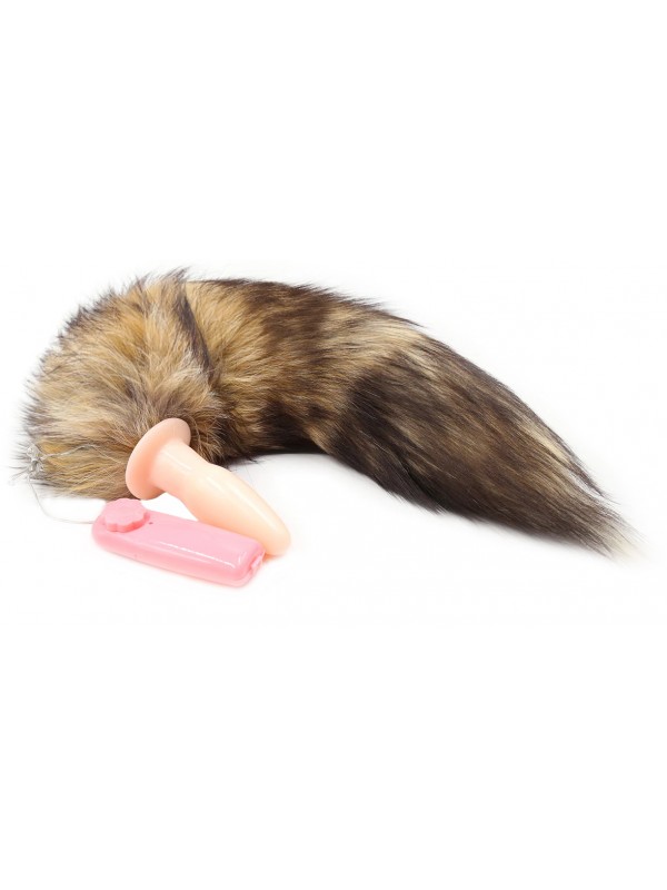 Анальная пробка с вибрацией и длинным бурым хвостиком 47 см код 274401202