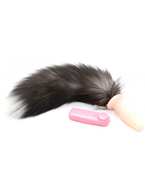 Анальная пробка с вибрацией и длинным черным хвостиком 47 см код 271901202