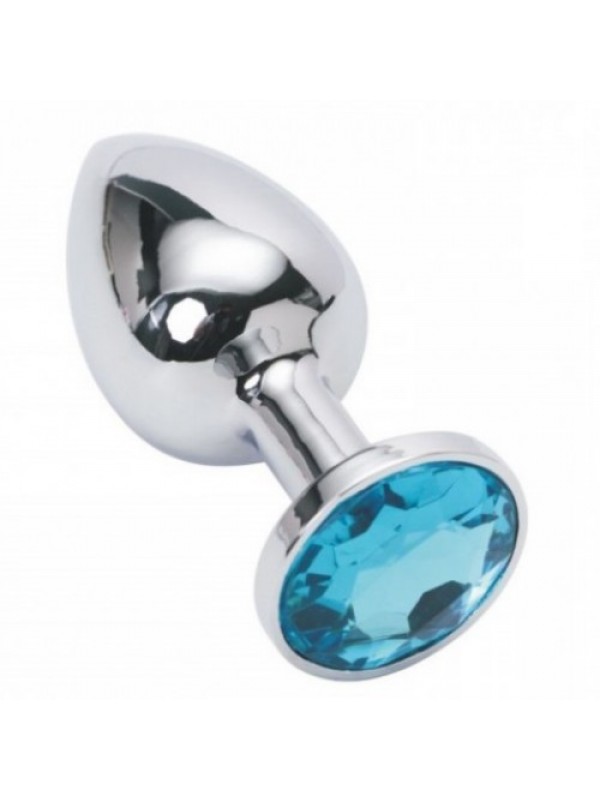 Металлическая анальная пробка с голубым камушком S код 361801033