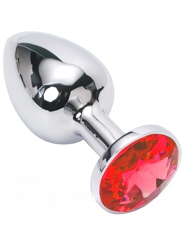Металлическая анальная пробка с красным камушком M код 362002033