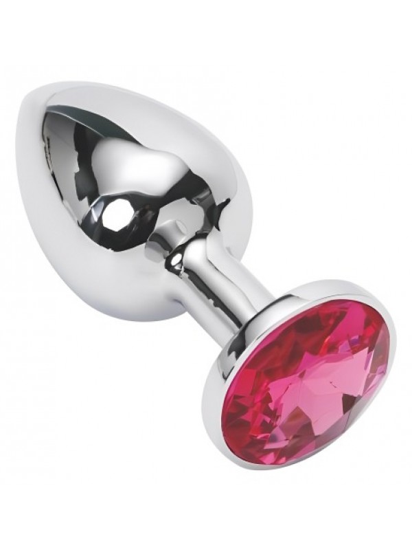 Металлическая анальная пробка с розовым камушком M код RY-002ROSE