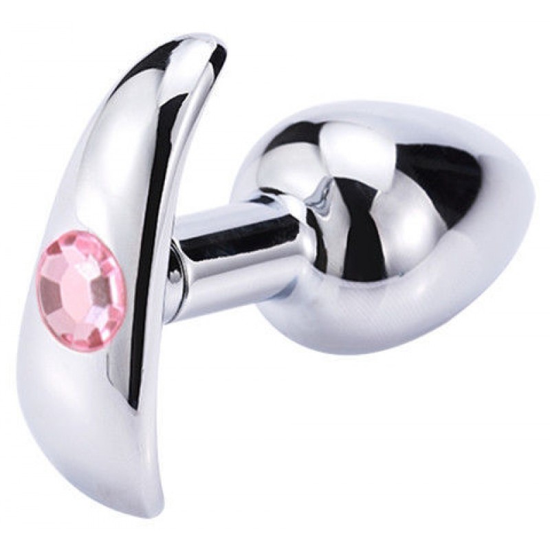 Металлическая анальная втулка со съемным серо-белым хвостиком и пробкой с розовым кристаллом код RY-130+MPJ-023-C.7