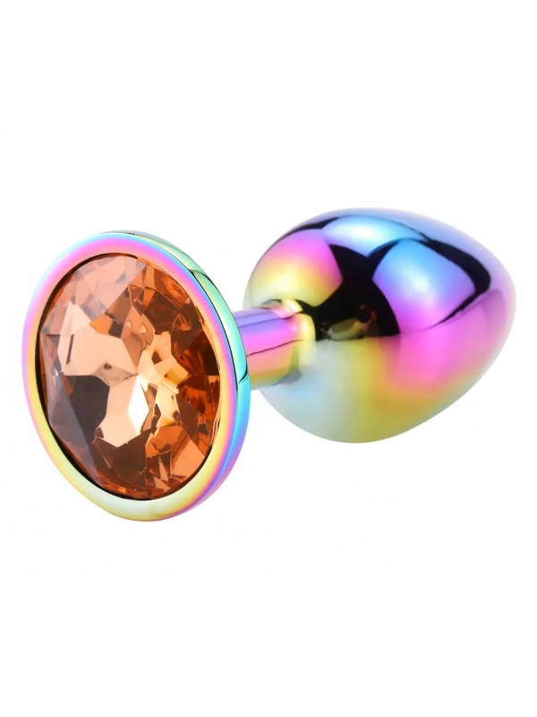Разноцветная анальная пробка с оранжевым камушком L код RY-009-E-L-Gold
