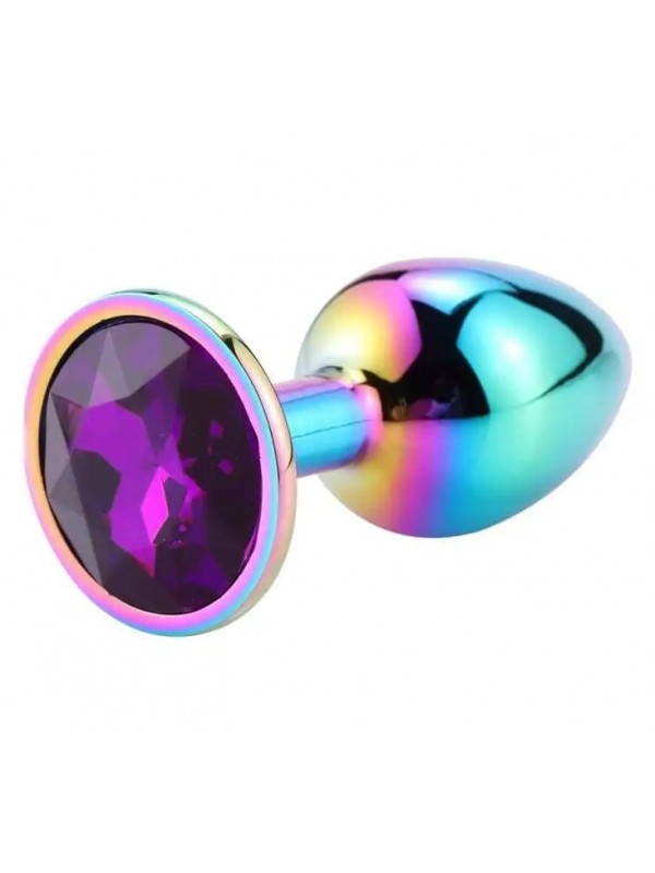 Разноцветная анальная пробка с пурпурным камушком L код RY-009-E-L-DarkPurple