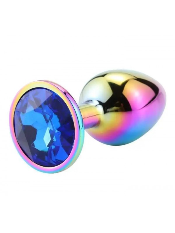 Разноцветная анальная пробка с синим камушком L код RY-009-E-L-DarkBlue