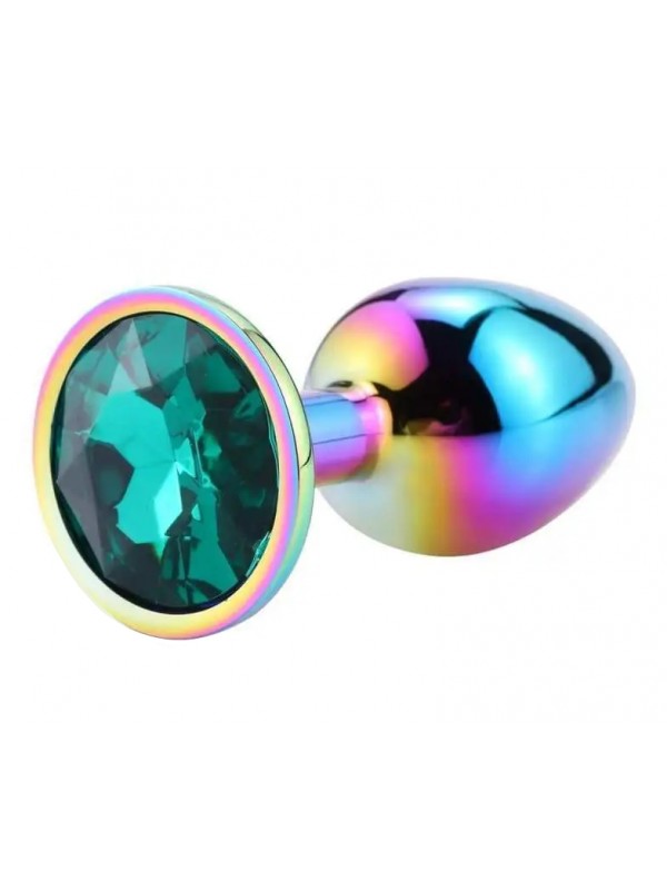 Разноцветная анальная пробка с зеленым камушком L код RY-009-E-L-DarkGreen