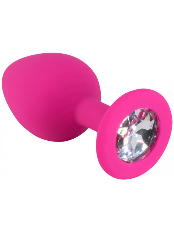 Розовая силиконовая пробка с прозрачным кристаллом М код 3310-02