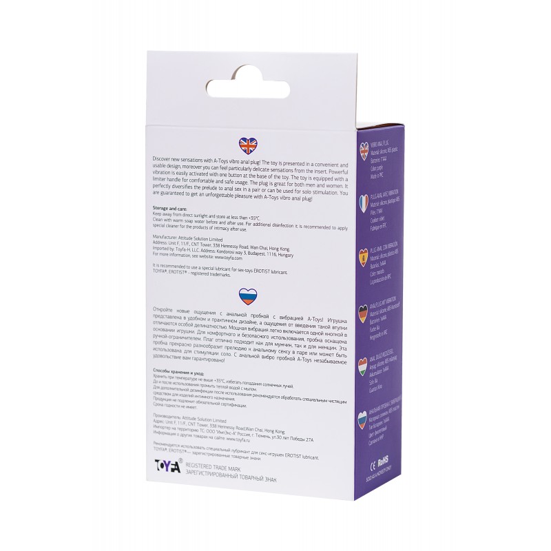 Откройте новые ощущения с анальной пробкой c вибрацией A-Toys! Игрушка представлена в удобном и практичном дизайне, а ощущения от введения такой втулки отличаются особой деликатностью. Мощная вибрация легко включается одной кнопкой в основании игрушки. Для комфортного и безопасного использования, пробка оснащена ручкой-ограничителем. Плаг отлично подходит как для мужчин, так и для женщин. Эта пробка прекрасно разнообразит прелюдию к анальному сексу в паре или может быть использована для стимуляции соло. С анальной вибро пробкой A-Toys незабываемое удовольствие вам гарантировано!