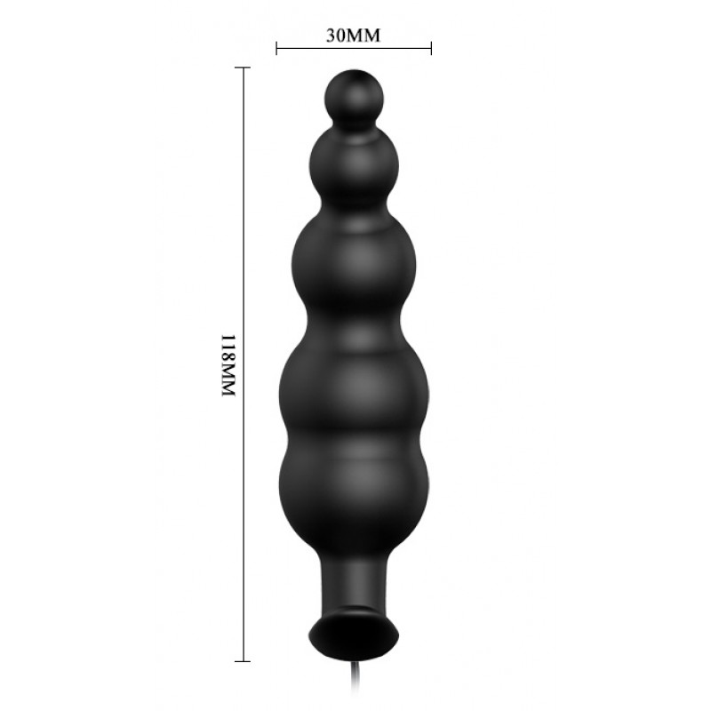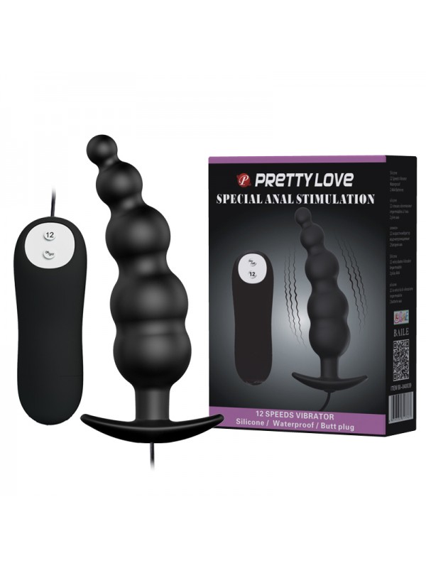 Анальная елочка черного цвета с проводным пультом и 12 режимами вибрации код BI-040039