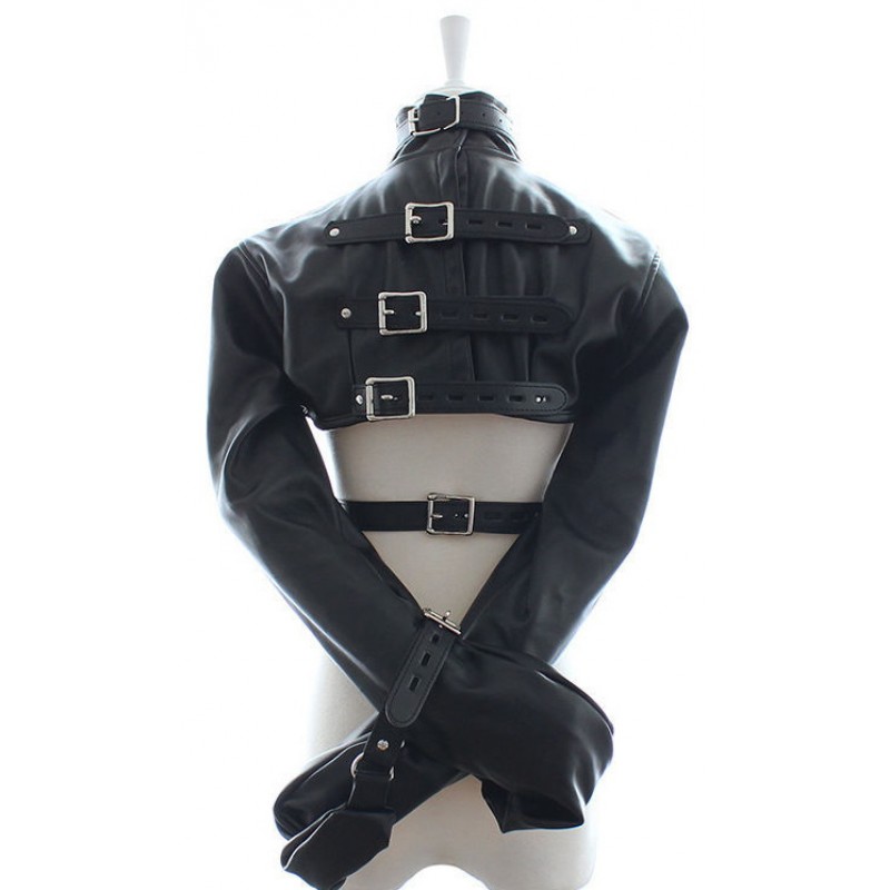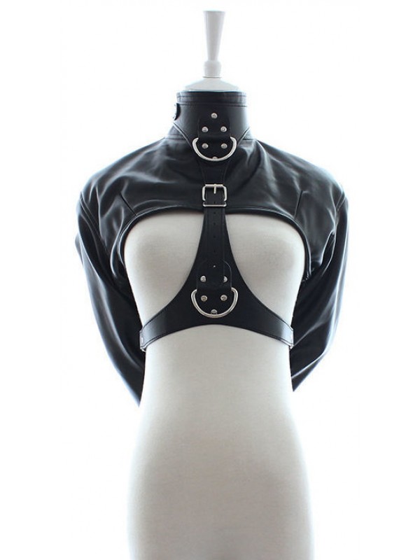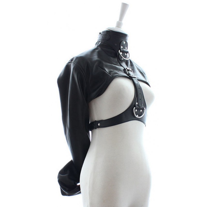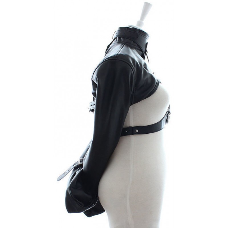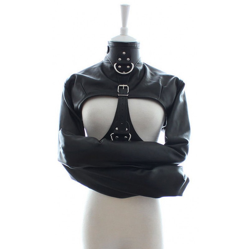 Смирительный жакет, основная часть которого выполнена из кожзаменителя, предназначен для надежной и удобной фиксации рук подчиняющегося партнера!Модель позволяет оставить открытой грудь, что дает простор для сексуальных утех.