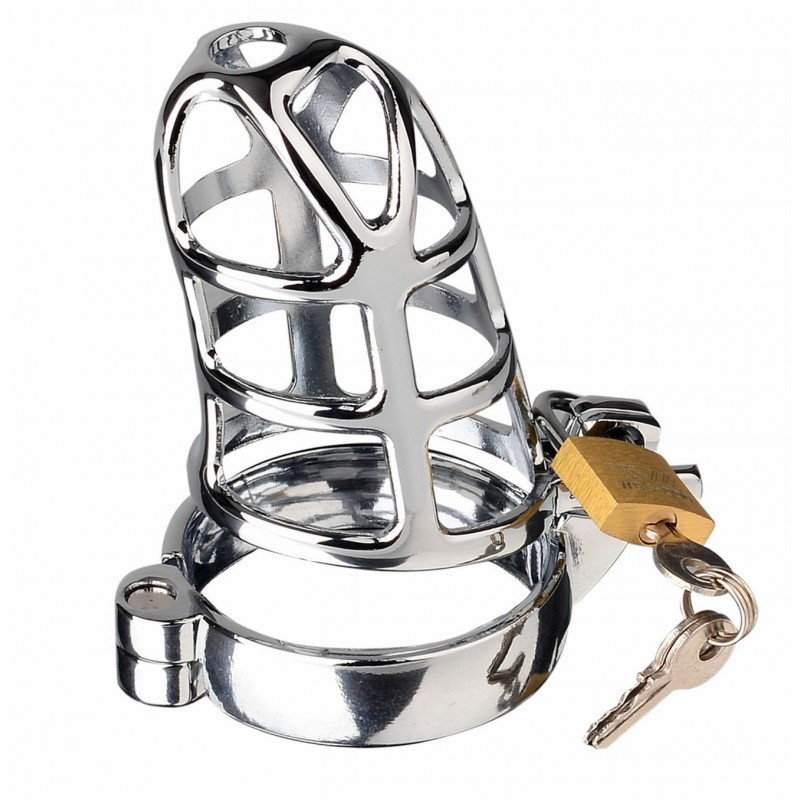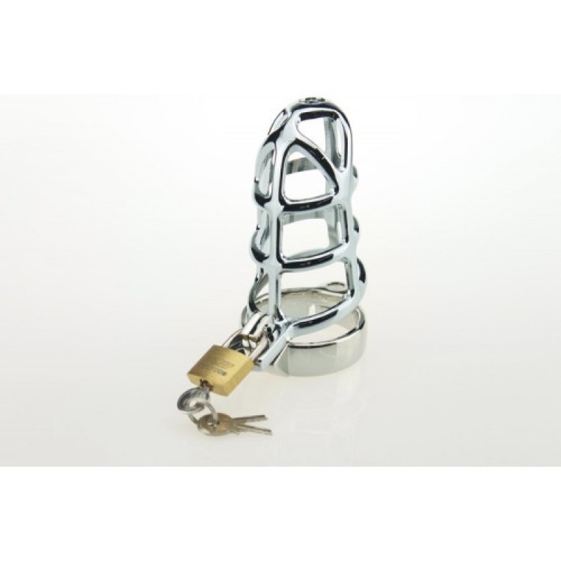 Комплектация: клетка для пениса, запорное кольцо, замок с двумя ключами, бархатный мешочек для хранения.Вес: 108 гр