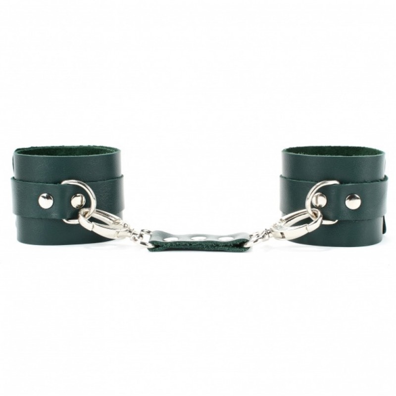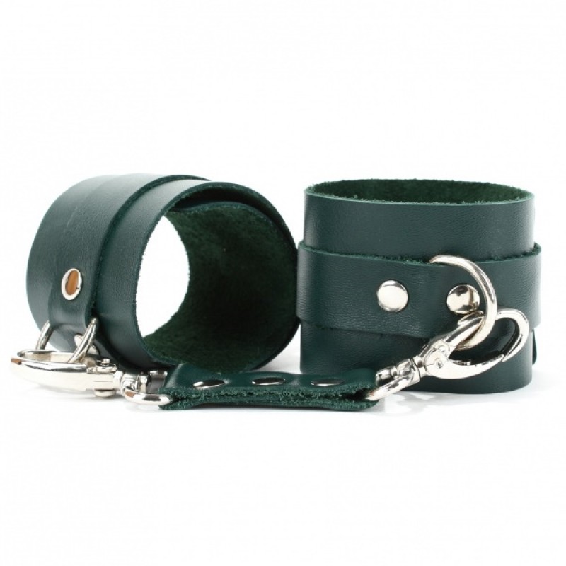 Обменивайтесь своими желаниями и страстным опытом вместе.Оковы выполнены из натуральной кожи изумрудного цвета.