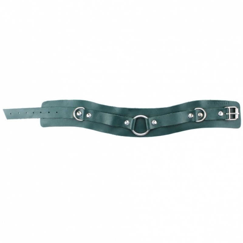 Ошейник выполнен из натуральной кожи изумрудного цвета, декорирован вставкой из черной замши, заклепками, металлическим кольцом и двумя полукольцами.Товар для любителей "особой романтики" наполнит любой ваш вечер страстью, гармонией и романтикой.