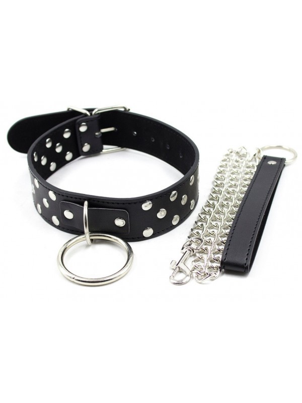 Ошейник с металлическими заклепками и поводком код 262402024