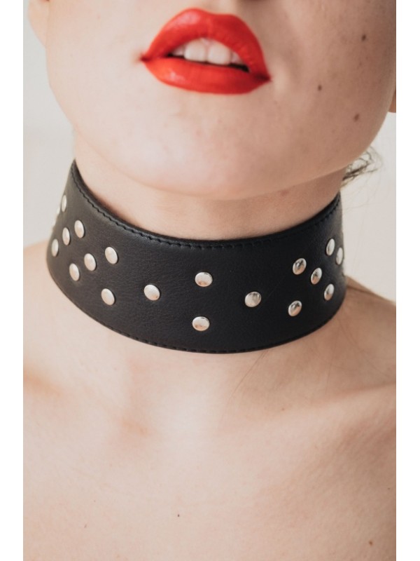 Широкий кожаный чокер с заклепками код BA55026