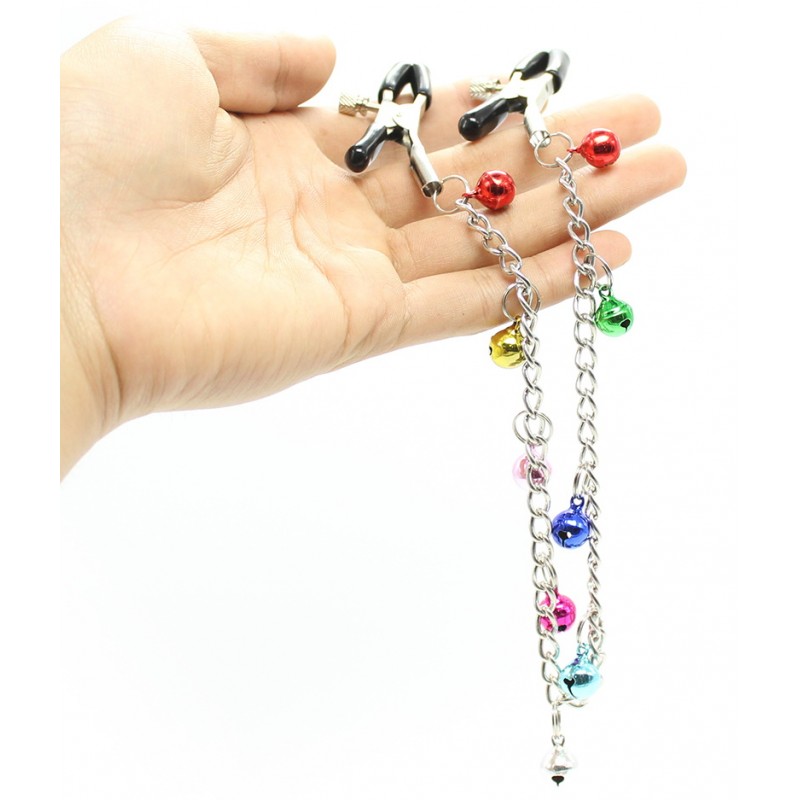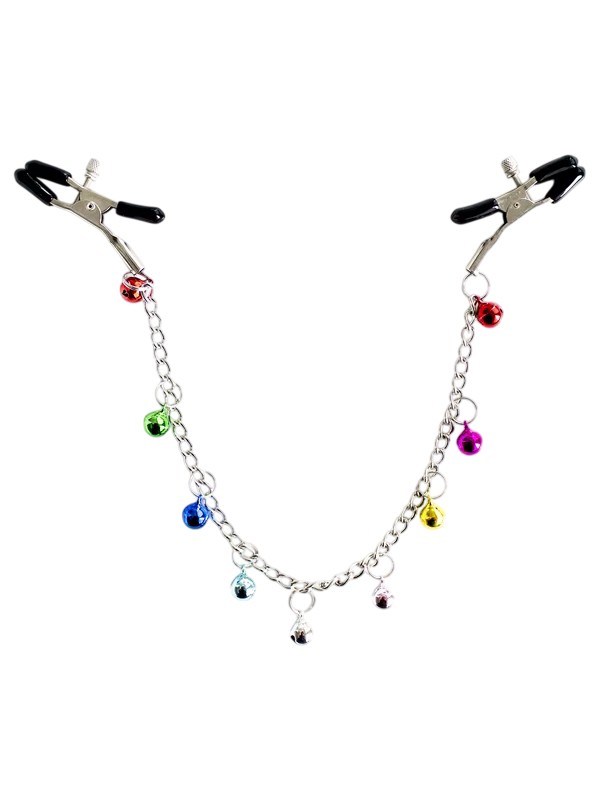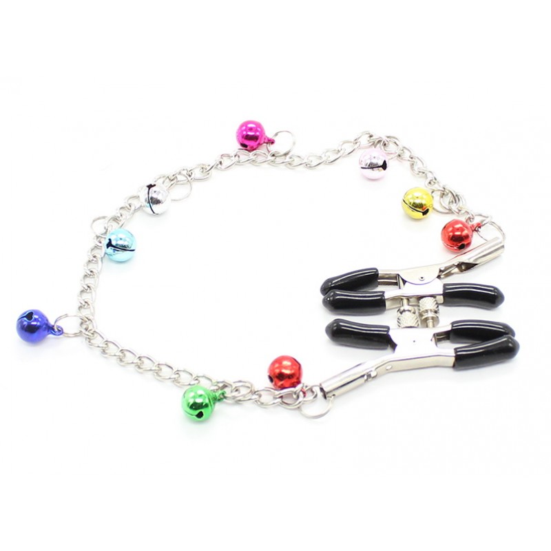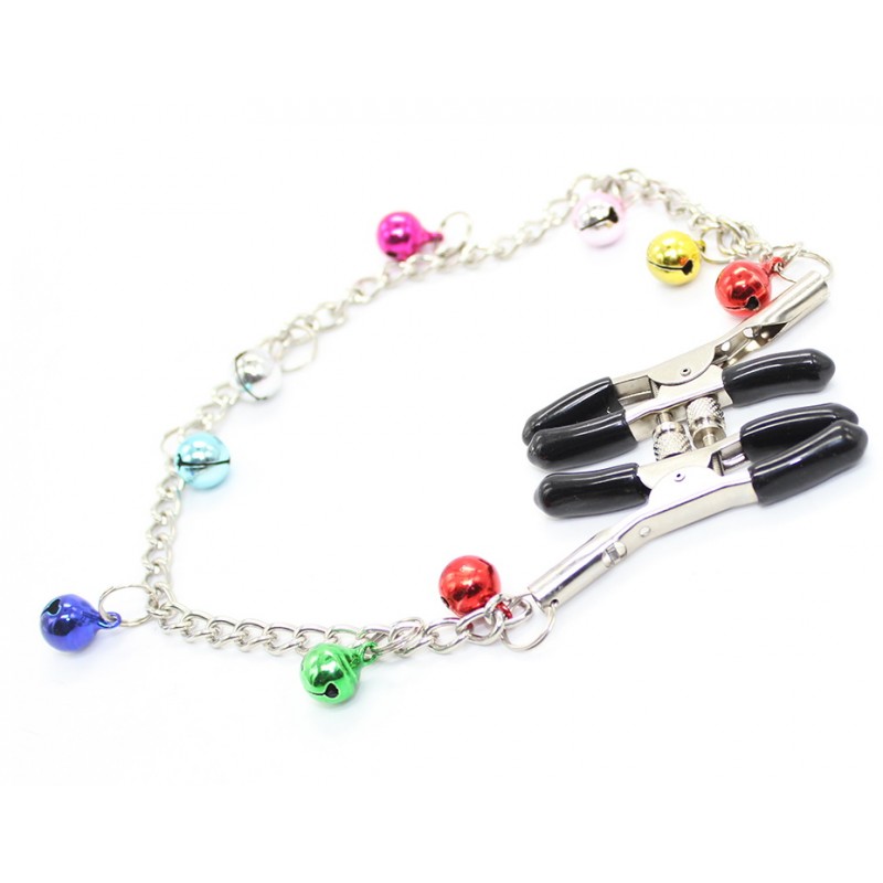 Зажимы для сосков с цепочкой и разноцветными бубенчиками код 200001019