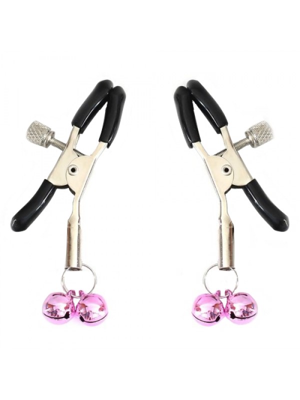 Зажимы для сосков с двойным бубенчиком розовые код 205401014