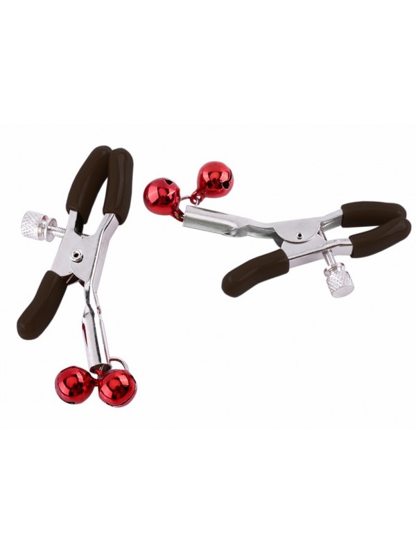 Зажимы для сосков с двойным бубенчиком черно-красные код 202001014