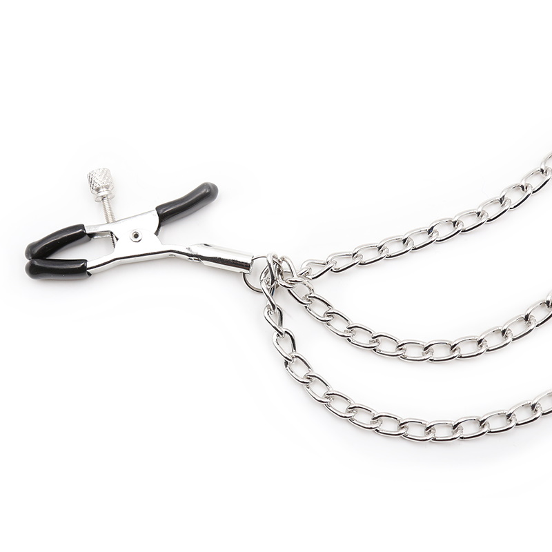 Благодаря тому, что на сосках расположено большое количество нервных окончаний, женщины способны получать множество новых и ярких ощущений от такой стимуляции!Цепи, которые прикреплены к зажимам, позволят расширить круг воплощаемых фантазий - Вы сможете прикрепить к ним дополнительные аксессуары, утяжелители... или просто тянуть за них, чтобы еще больше обострить ощущения!