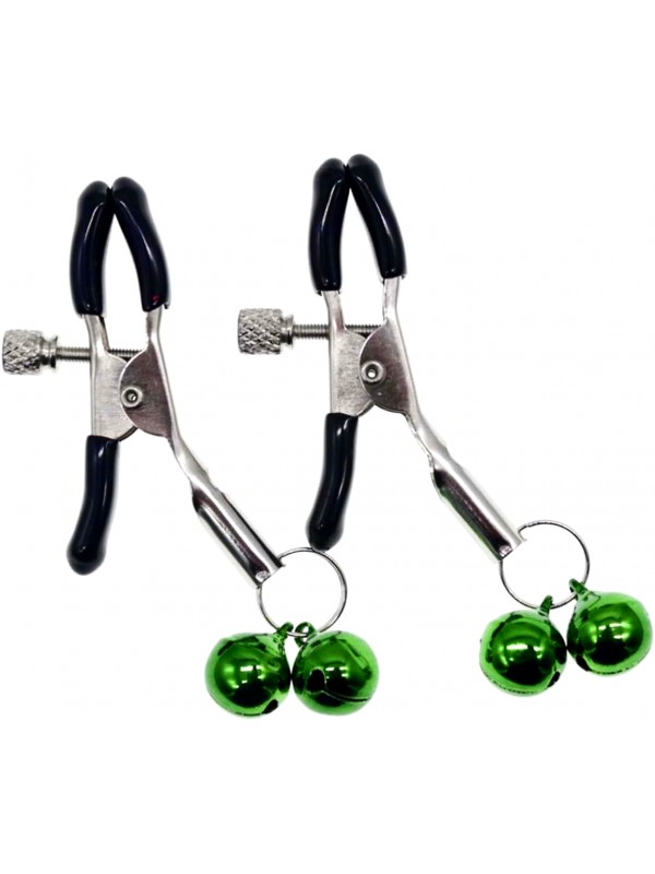Зажимы для сосков с двойным бубенчиком зеленые код 201701014