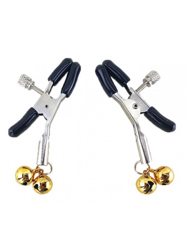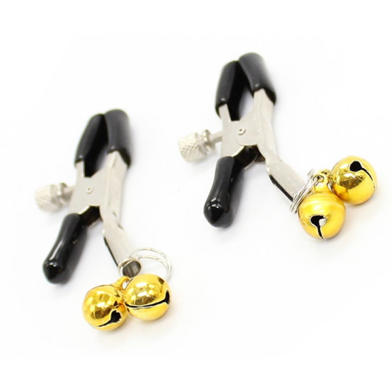 Зажимы для сосков с двойным бубенчиком желтые код 201601014