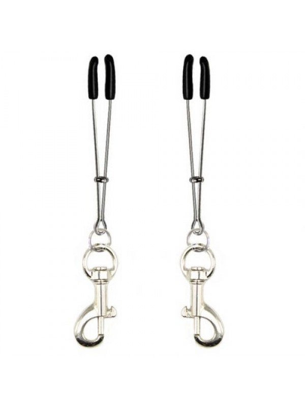 Благодаря тому, что на сосках расположено большое количество нервных окончаний, женщины способны получать множество новых и ярких ощущений от такой стимуляции!Карабины, которые прикреплены к каждому зажиму, позволят расширить круг воплощаемых фантазий - Вы сможете прикрепить к ним дополнительные аксессуары, утяжелители, соединить зажимы веревкой, цепью... или просто тянуть за них, чтобы еще больше обострить ощущения!Зажимы имеют специальные мягкие наконечники, оберегающие нежную кожу сосков от повреждения. Сила сжатия регулируется специальным ползунком.