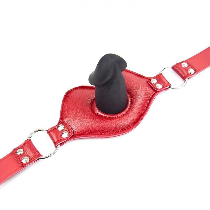 Кляп-фаллос силиконовый на красном ремешке код 222002059