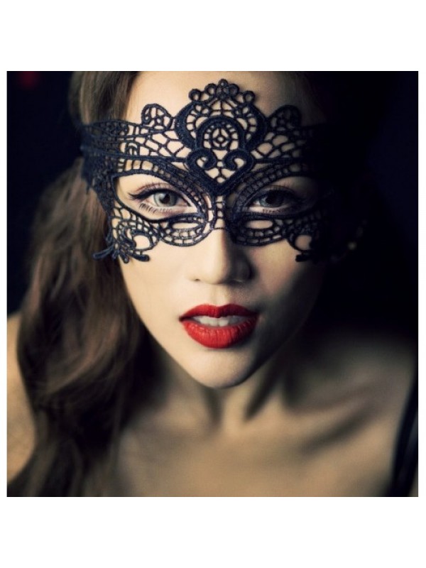 Осторожно, такой аксессуар обостряет шарм и сексуальность!Маска изготовлена из плотного ажурного кружева черного цвета. Крепится с помощью длинной атласной ленточки.