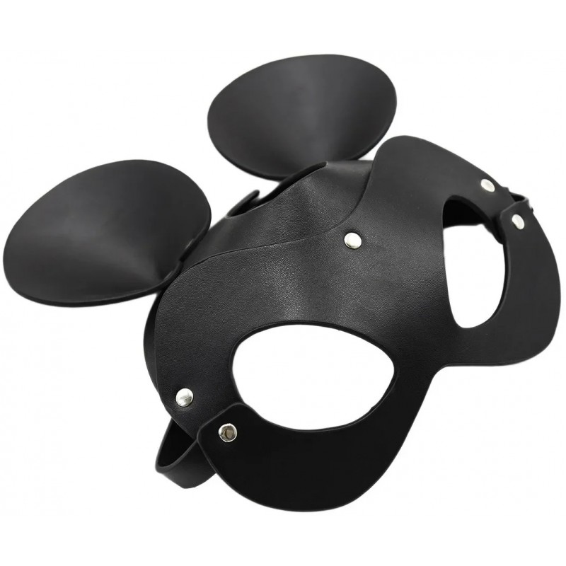 Соблазнительная маска поможет Вам создать яркий и игривый образ милой мышки!Выполнена из плотной искусственной кожи черного цвета, благодаря чему великолепно держит свою форму. Декорирована металлическими заклепками, придающими образу дерзости!