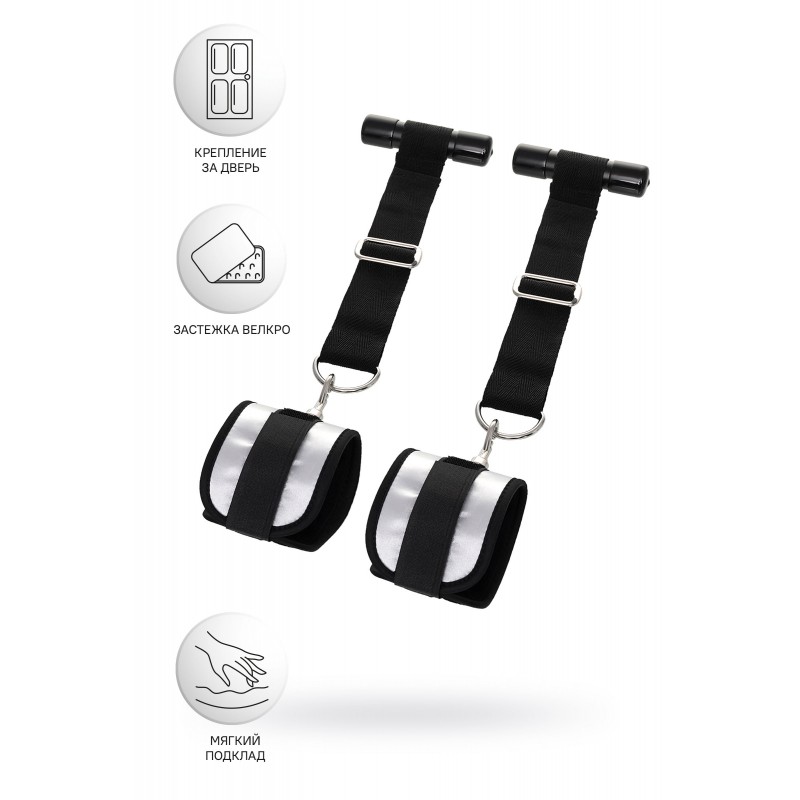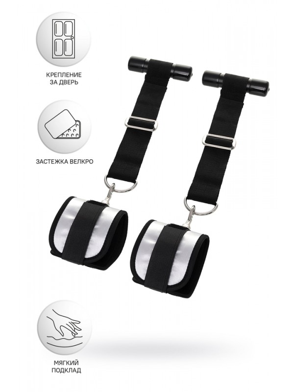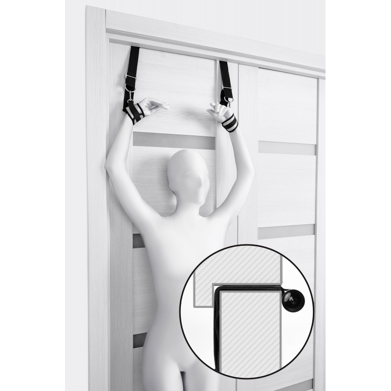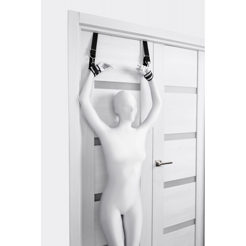 Оставьте наручники и кровать в прошлом веке, пора играть по-взрослому. Фиксаторы для рук на дверь для смелых и терпеливых. Больше позиций для получения удовольствия без силовых затрат! Пластиковые цилиндры фиксируются за дверью, наручники крепятся на запястьях с помощью застежки велкро. Размер легко регулируется ремешками и подойдет для запястий любого размера. Серебряный цвет с черными ремешками смотрится элегантно. Внутренняя часть наручников мягкая и не доставляет дискомфорта во время использования. Фиксаторы с помощью двери дают вам больше свободы для реализации фантазий. Не нужно напрягаться, чтобы удерживать руки вверху, не нужно контролировать своего партнера, если хочется удержать его стоя. Эта оригинальная форма бандажа выведет вас на новый уровень наслаждения с доверием. Материал: полиэстер, полипропилен, ABS-пластик Общая длина наручников: 23 см Длина ремней: 26 см Ширина наручников: 7 см Диаметр цилиндра: 2,5 см