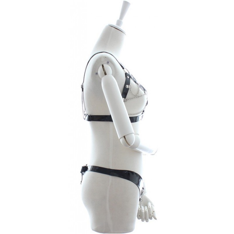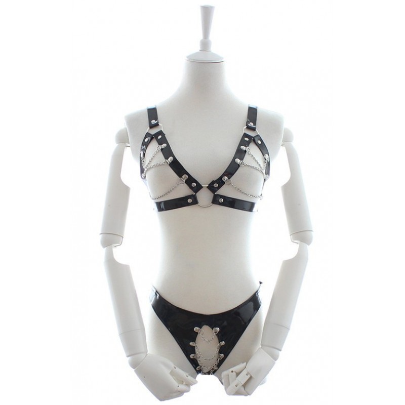Дерзкий, откровенный и вызывающий - этот комплект нижнего белья сведет Вашего партнера с ума!Лиф из лакированных ремешков приподнимает грудь, придавая женским формам еще большую привлекательность.